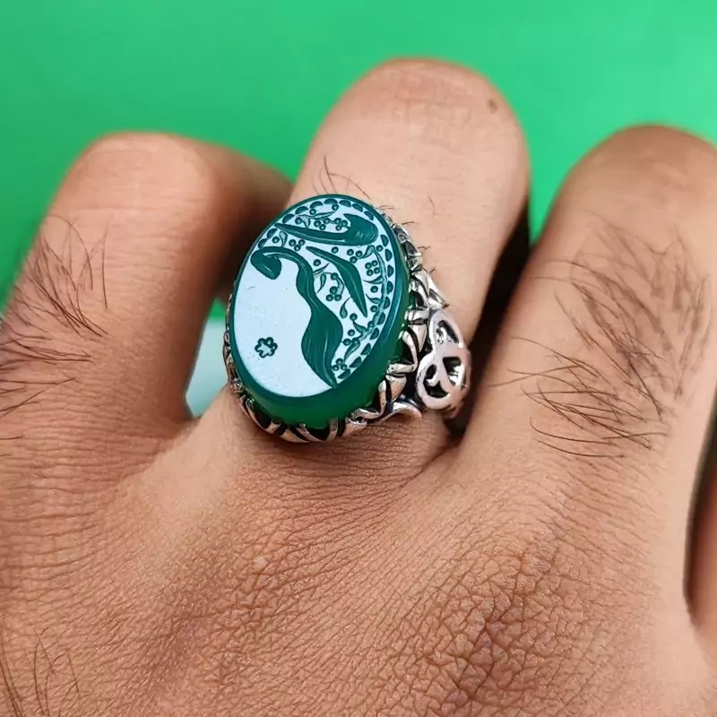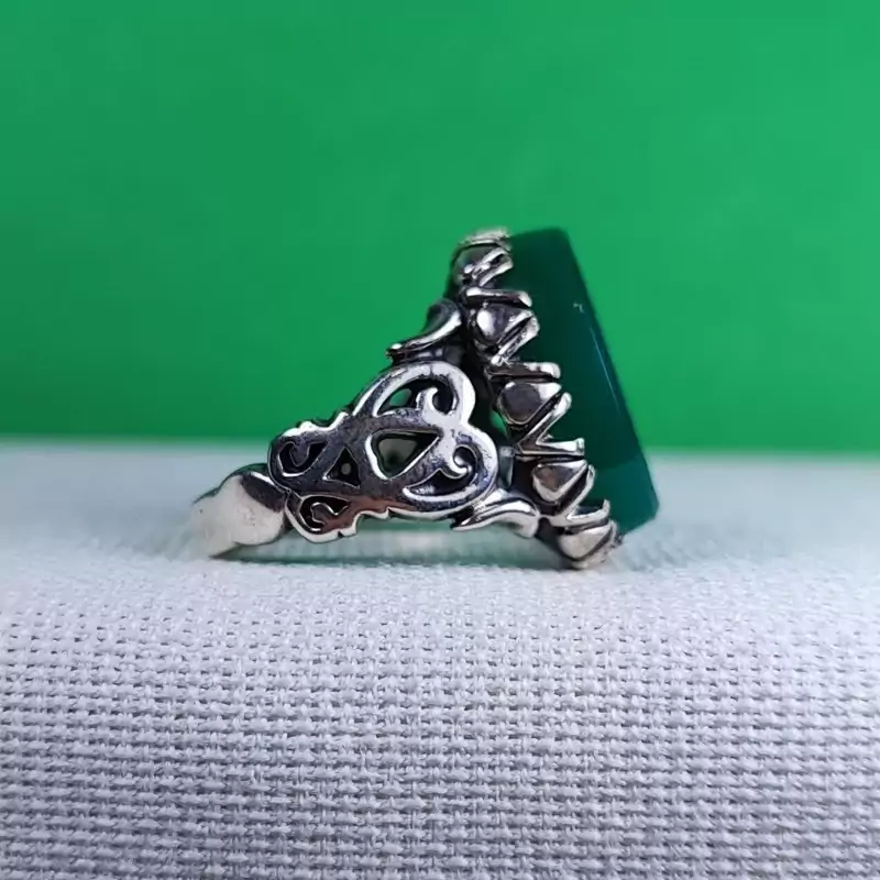 انگشتر نقره عقیق سبز با حکاکی یا رقیه (س)