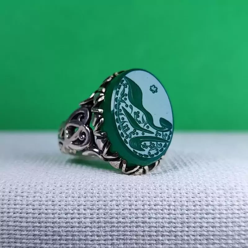 انگشتر نقره عقیق سبز با حکاکی یا رقیه (س)