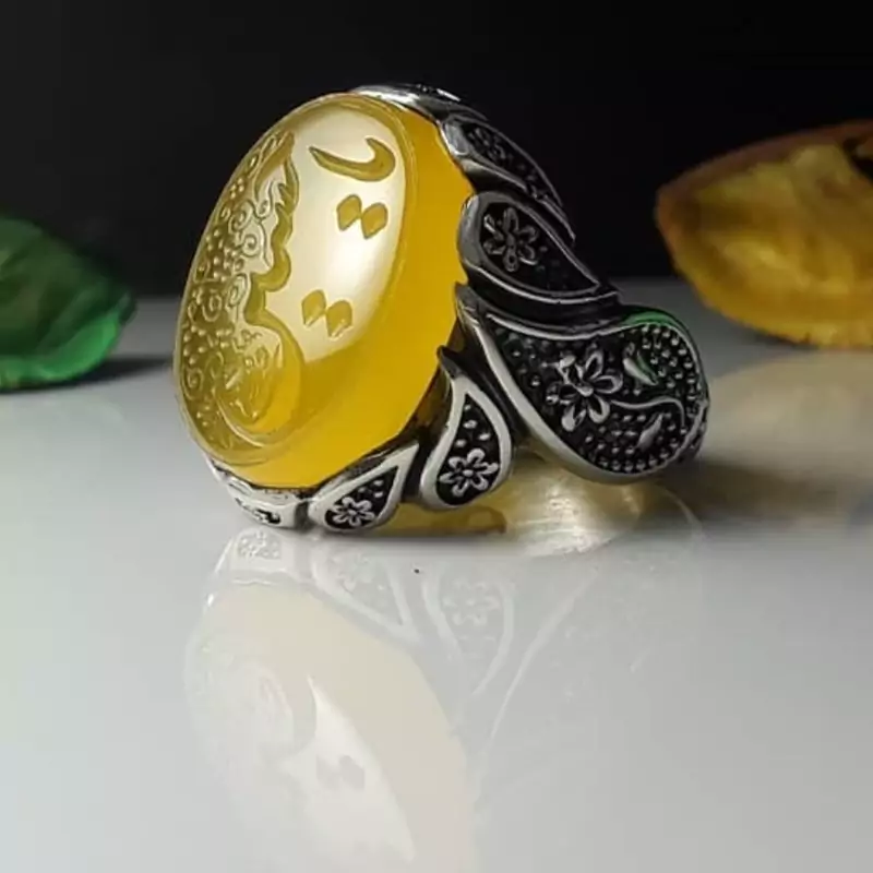انگشتر نقره عقیق زرد با حکاکی یا حسین (ع)..