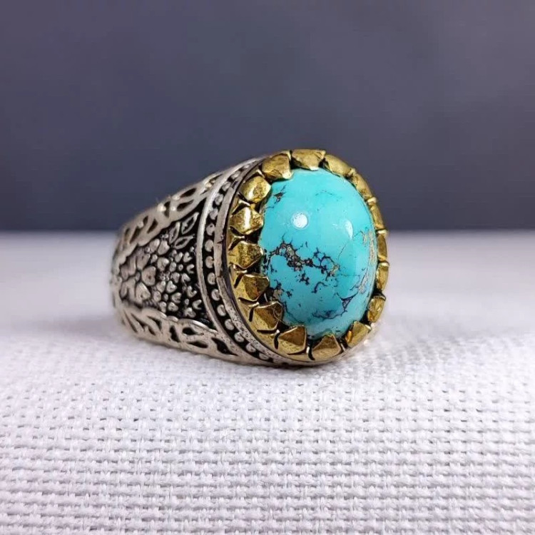 -انگشتر نقره مردانه با نگین فیروزه نیشابوری