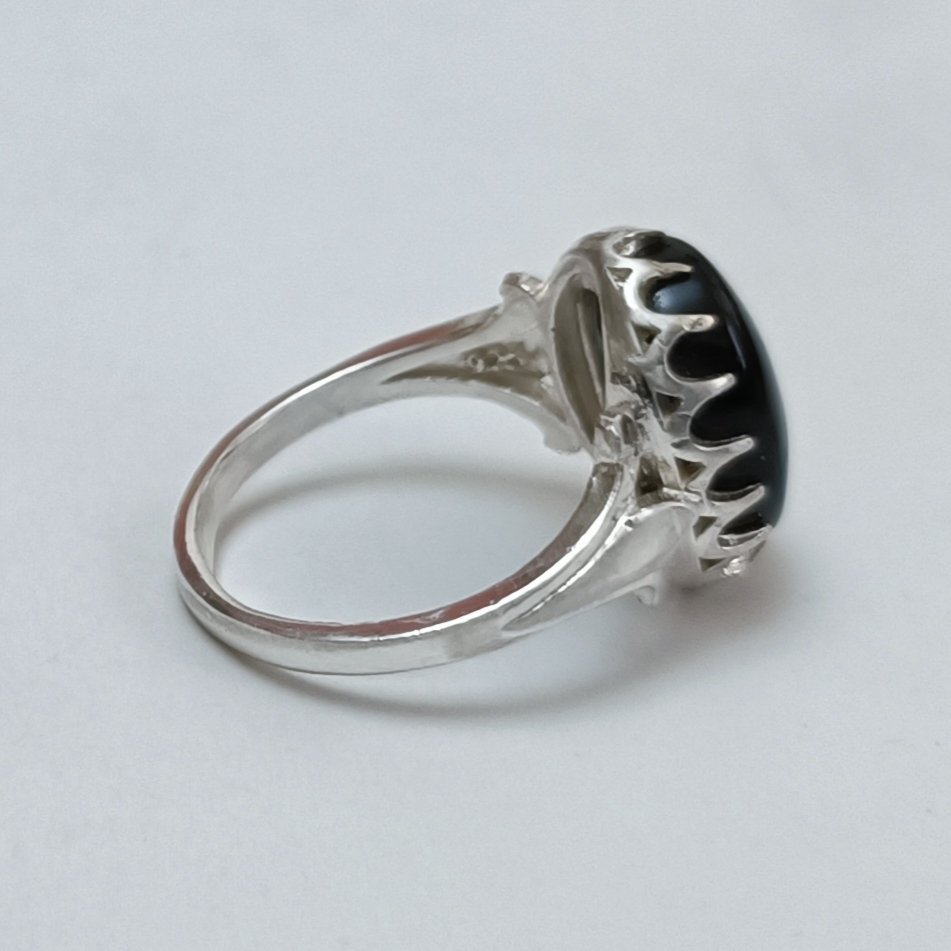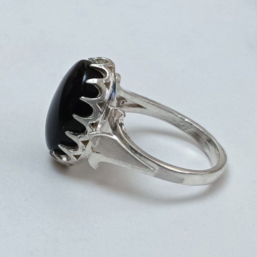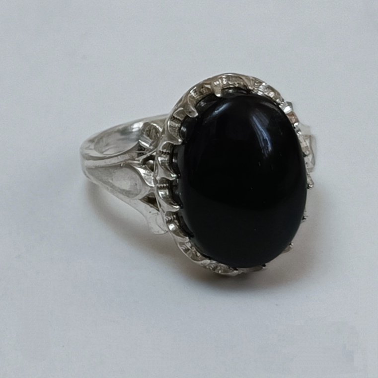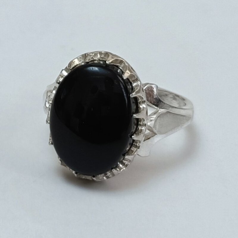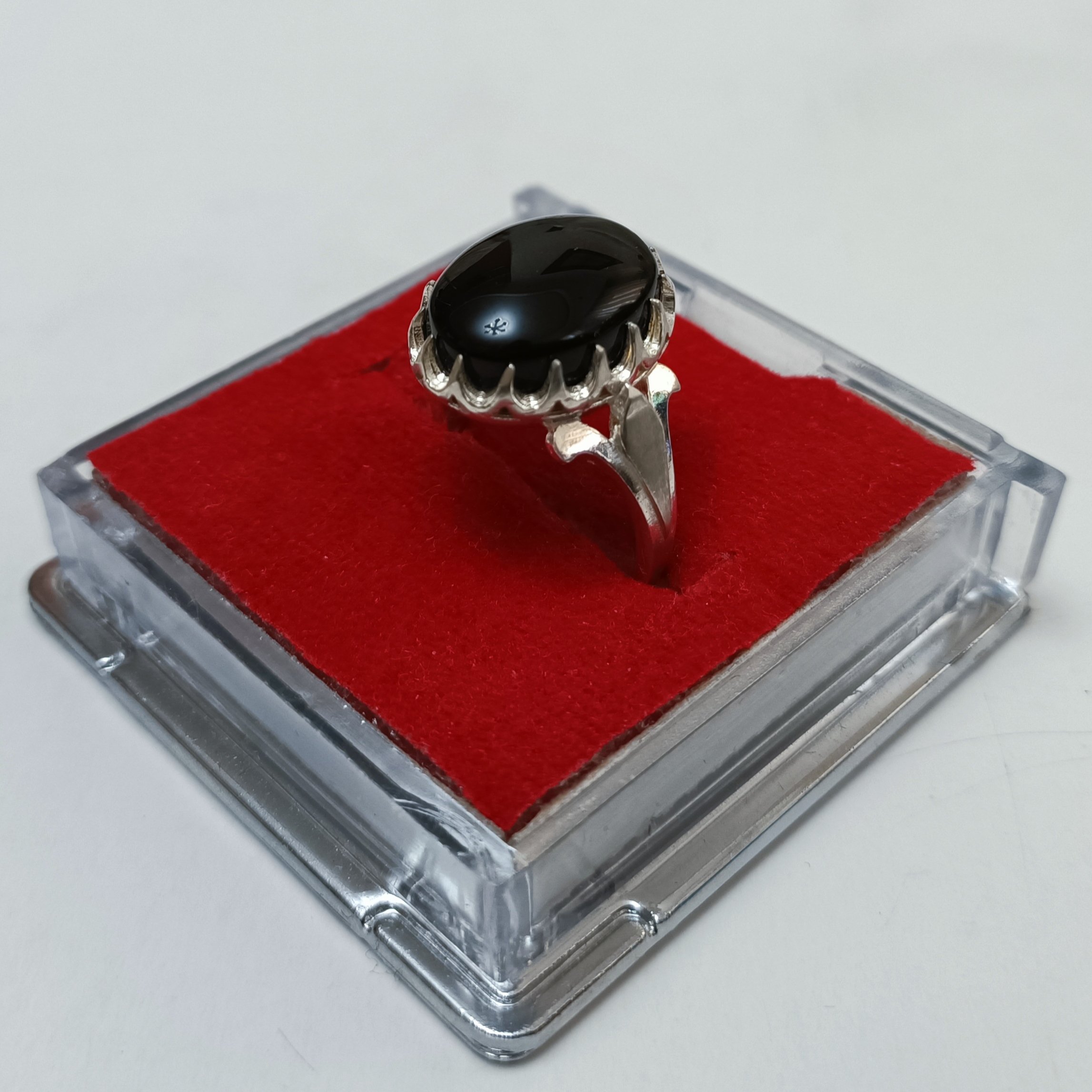 انگشتر نقره زنانه عیار 925 نگین عقیق یمانی سیاه(جزع) بسیار زیبا کد494