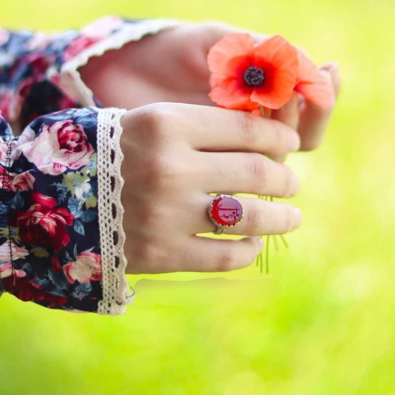 انگشتر نقره زنانه عقیق سرخ منقش به یا مهدی