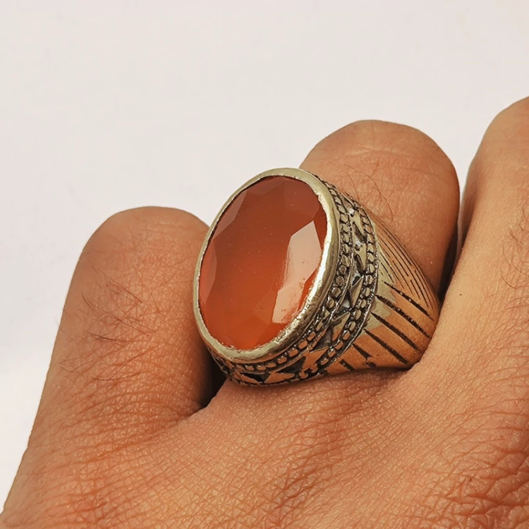 انگشتر مردانه عقیق سرخ خراسانی رکاب نقره روس رنگ ثابت