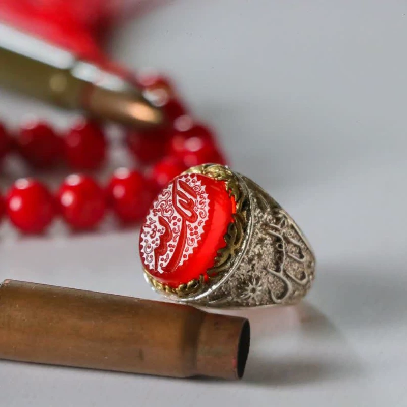انگشتر نقره مردانه عقیق سرخ منقش به الملک الله