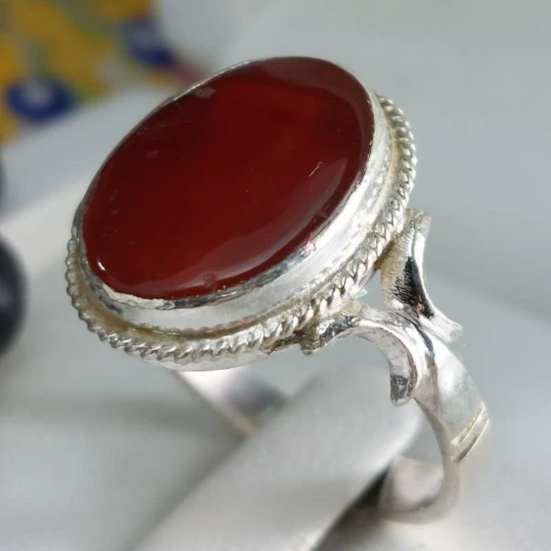 انگشتر نقره مردانه با نگین عقیق سرخ یمن