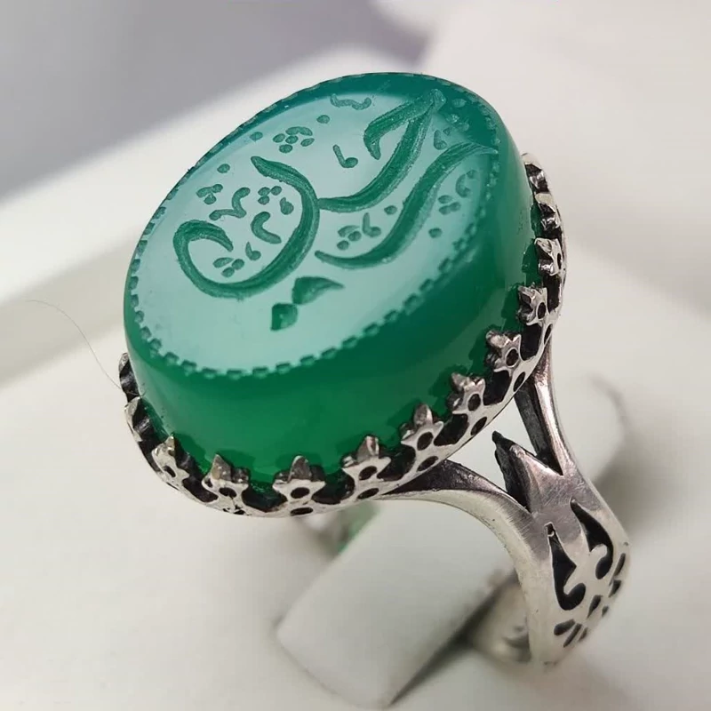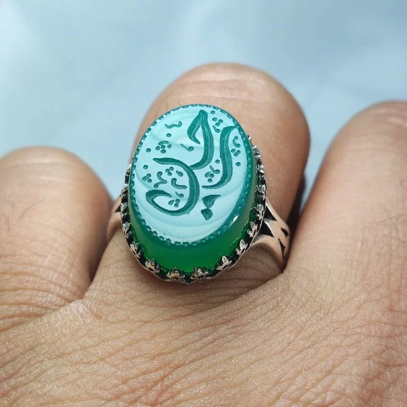 انگشتر نقره مردانه عقیق سبز با حکاکی (یاحسین)