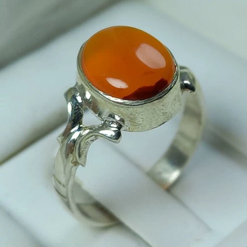 انگشتر نقره مردانه با نگین عقیق پرتقالی یمن ُ