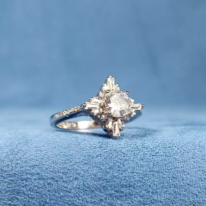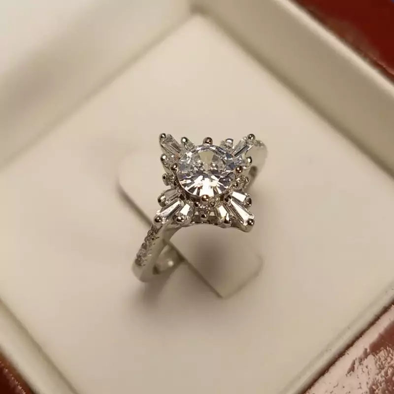 انگشتر نقره زنانه سولیتر با آبکاری طلا سفید