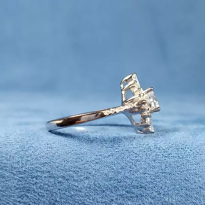 انگشتر نقره زنانه سولیتر با آبکاری طلا سفید