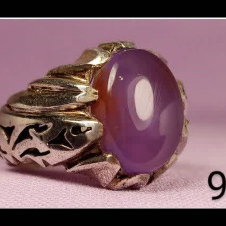 انگشتر نقره مردانه با نگین عقیق یمنی. -