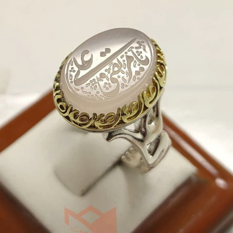 انگشتر نقره مردانه عقیق سوسنی منقش به یا مرتضی علی --