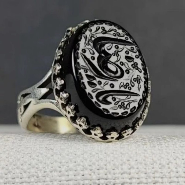 انگشتر نقره عقیق مشکی با حکاکی یا امام رضا علیه السلام