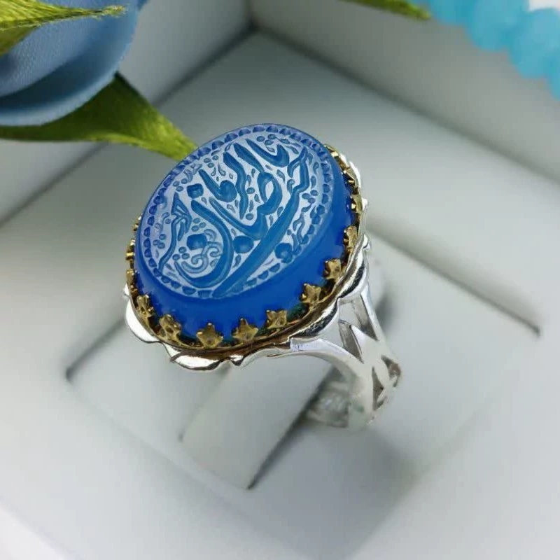 انگشتر نقره مردانه عقیق آبی منقش به یا صاحب الزمان ادرکنی -
