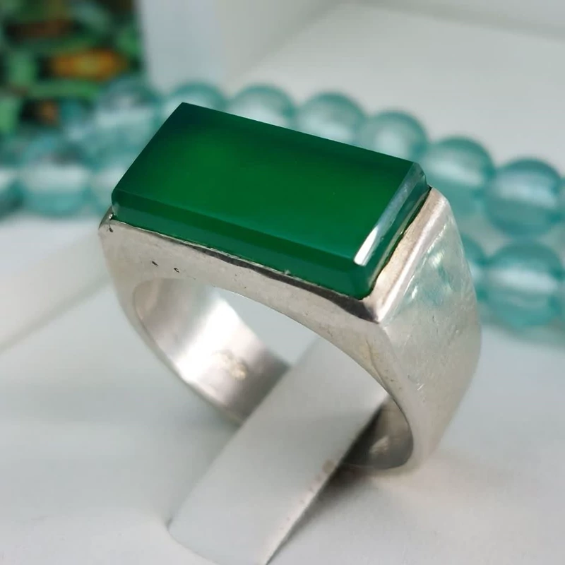 انگشتر نقره مردانه عقیق سبز با رکاب مستطیلی