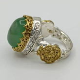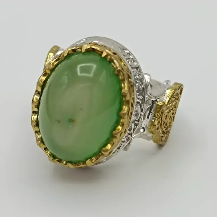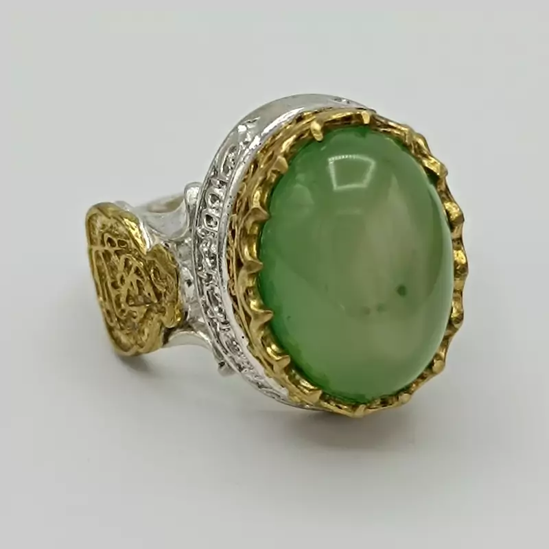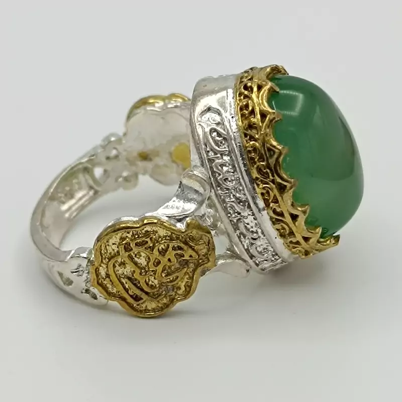 انگشتر نقره مردانه تاج طلایی عقیق سبز اصیل و معدنی کد 2036