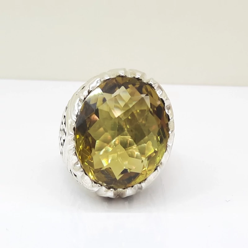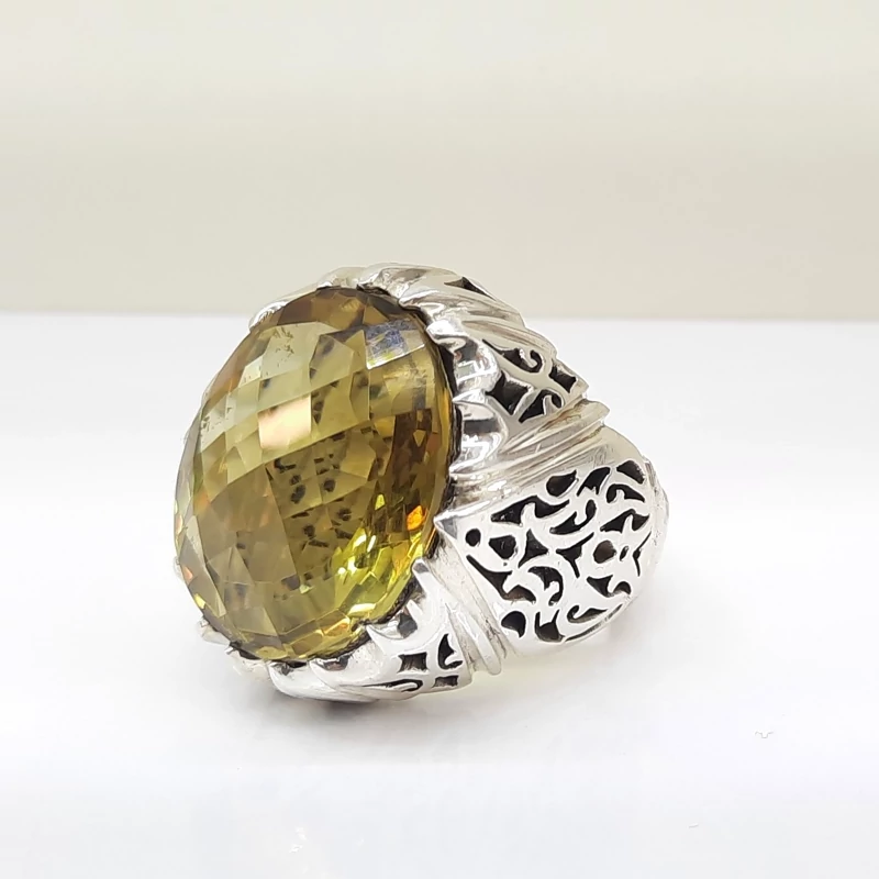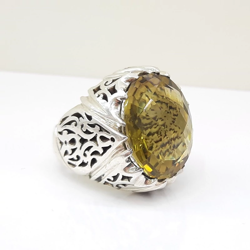 انگشتر سیترین معدنی رکاب نقره دست ساز شبکه کاری شده