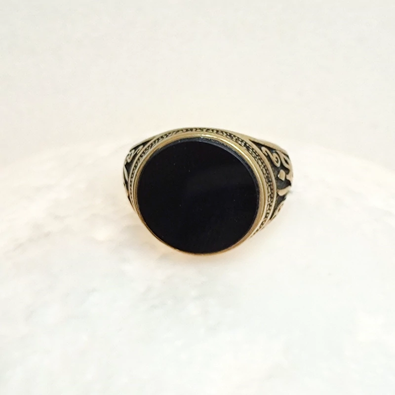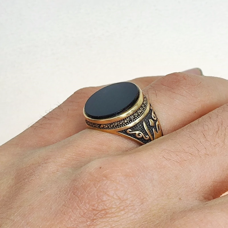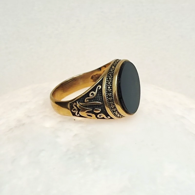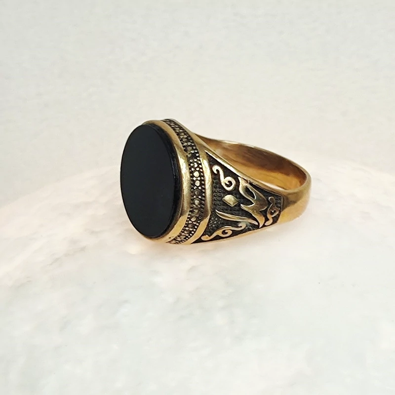 انگشتر اسپرت مردانه عقیق مشکی رکاب طلا روسی رنگ ثابت