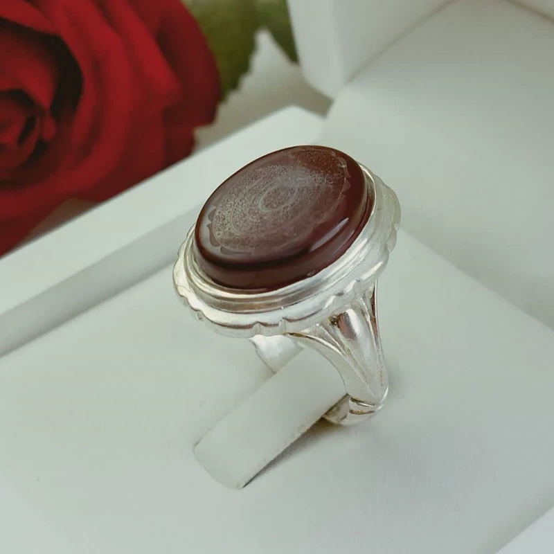 انگشتر نقره مردانه عقیق کبود منقش به 18 ذکر