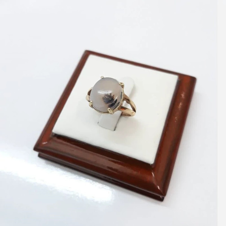 انگشتر زنانه عقیق شجر قائن رکاب طلاروسی رنگ ثابت