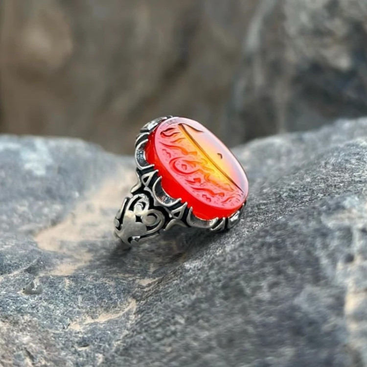 انگشتر نقره عقیق سرخ خراسانی با ذکر امیری حسین .....