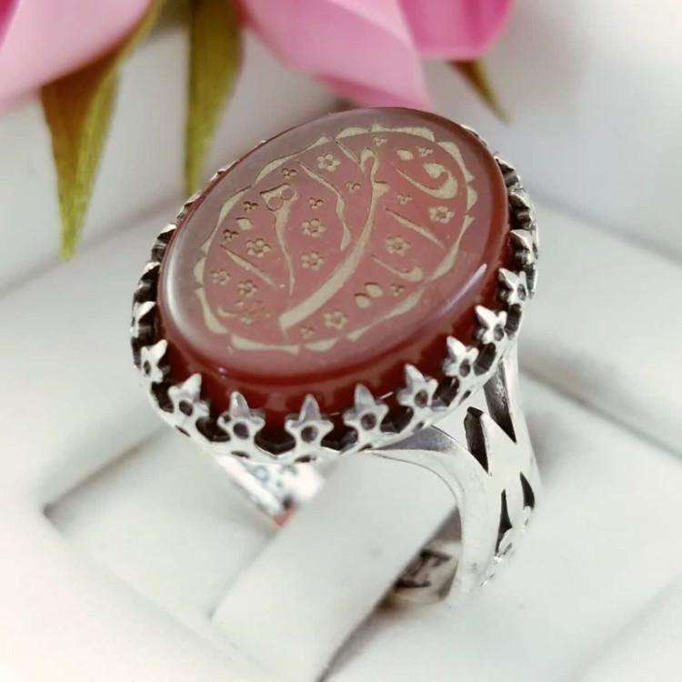 انگشتر نقره مردانه عقیق سرخ منقش به یا فاطمه الزهرا -