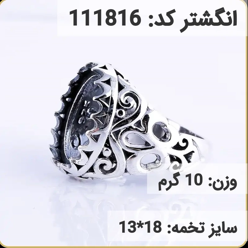 انگشتر نقره رکاب خالی مردانه اکسید سیاه قلم کد 111816