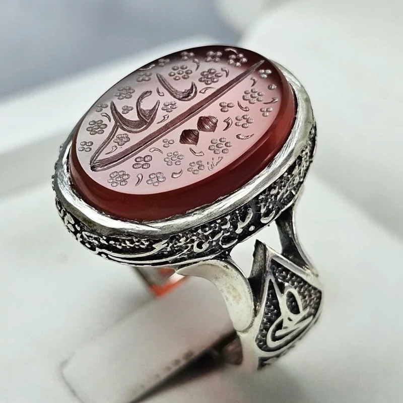 انگشتر نقره مردانه عقیق سرخ منقش به یا علی