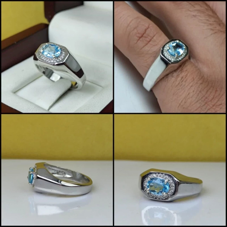انگشتر توپازآبی سوئیسی رکاب دست وماشین مخراج پرنس