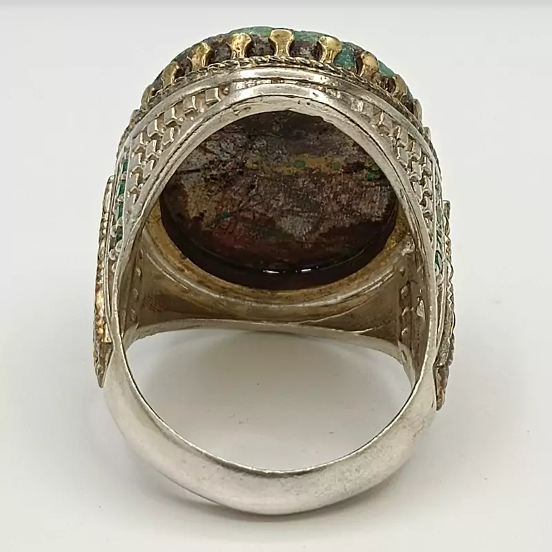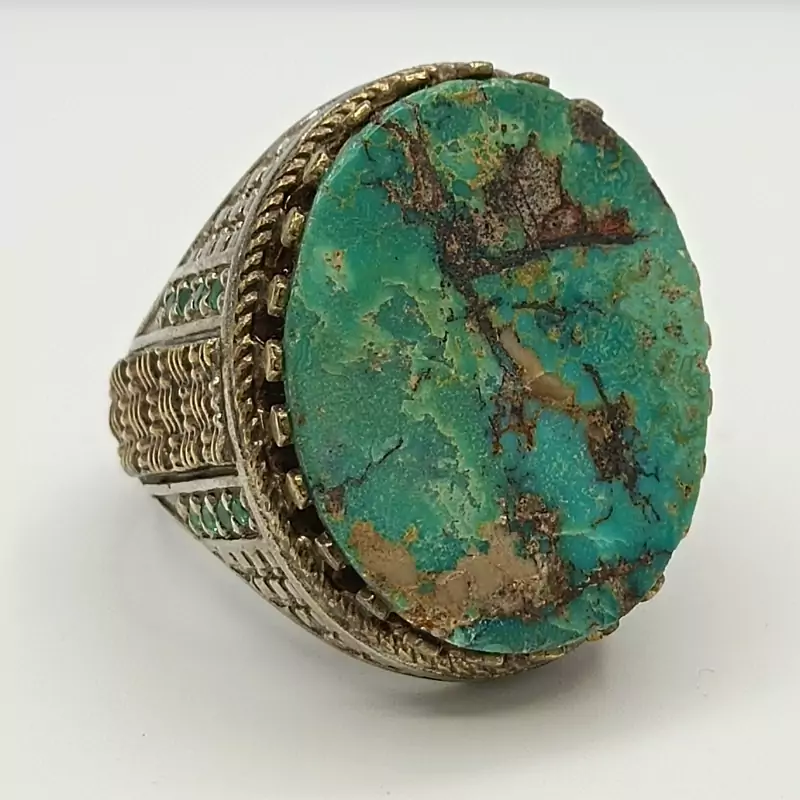 انگشتر نقره مردانه نگین فیروزه نیشابور کد 1916