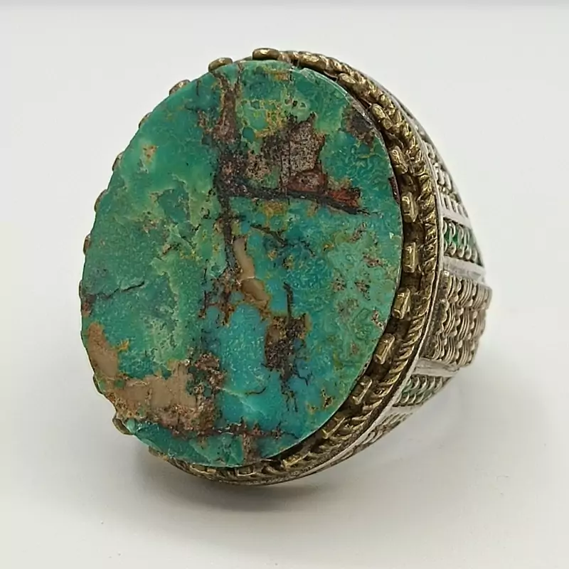 انگشتر نقره مردانه نگین فیروزه نیشابور کد 1916
