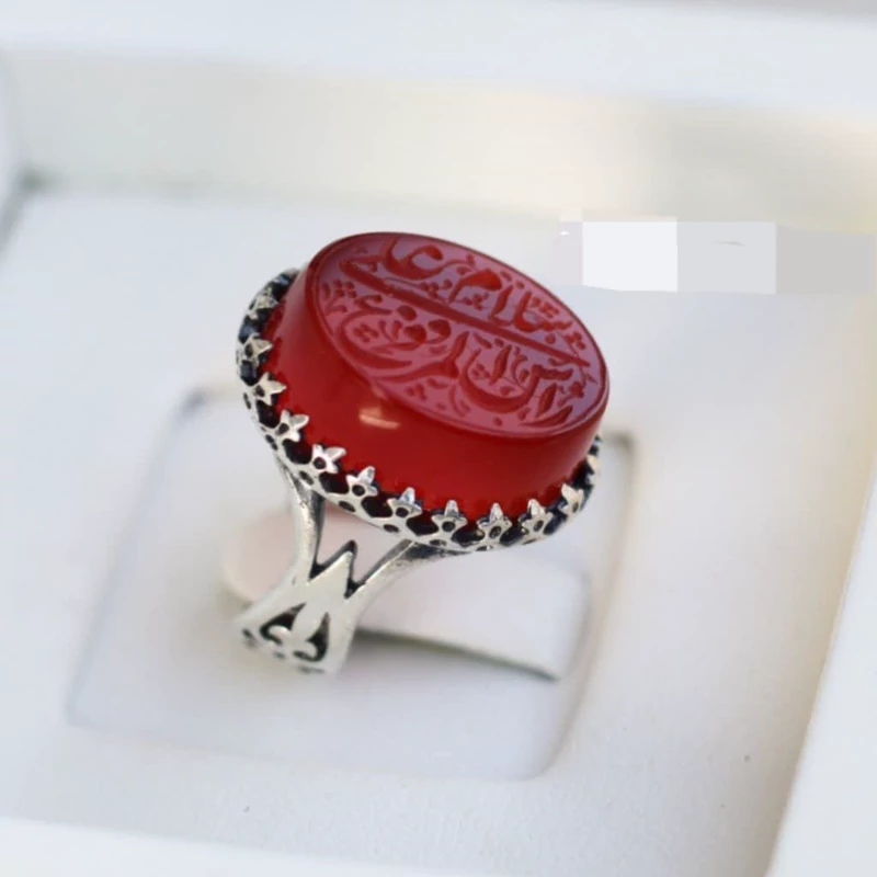 انگشتر نقره مردانه با نگین عقیق سرخ یمنی-