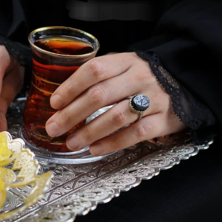 انگشتر نقره زنانه عقیق مشکی منقش به یا حسین --