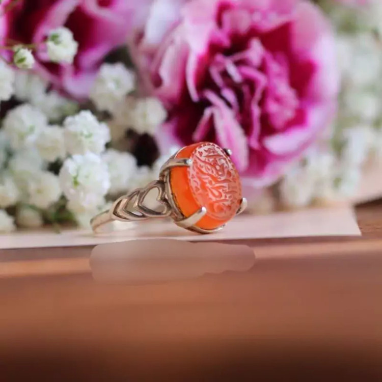انگشتر نقره زنانه عقیق سرخ منقش به یا فاطمه الزهرا