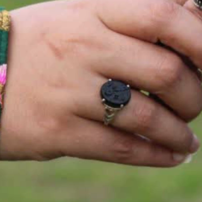 انگشتر نقره زنانه عقیق مشکی منقش به یا حسین -،
