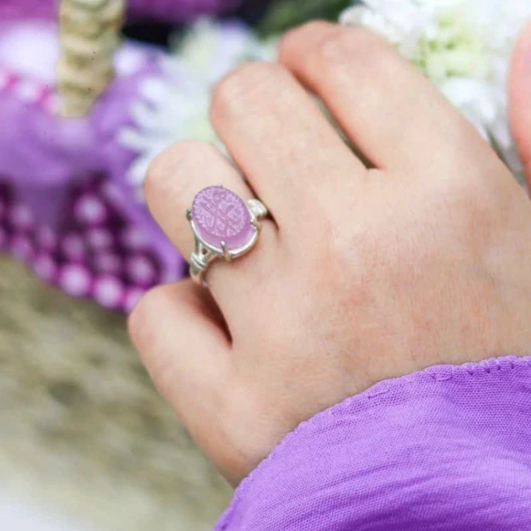 انگشتر نقره زنانه عقیق سوسنی منقش به یا زهرا --