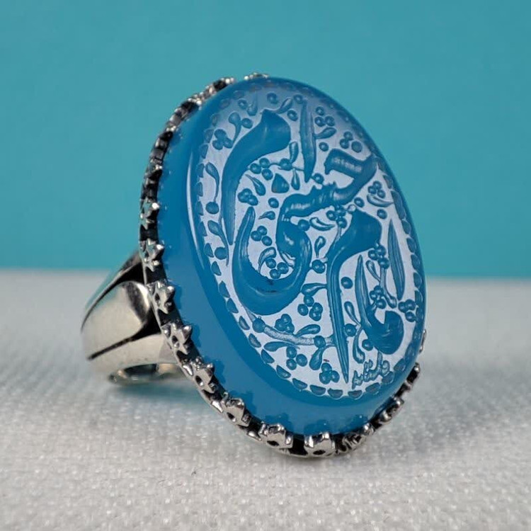 انگشتر نقره عقیق آبی با حکاکی امام حسنی ام