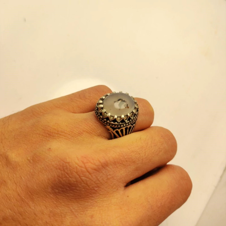 انگشتر مردانه عقیق شجر قائن نقره روس رنگ ثابت خاص و