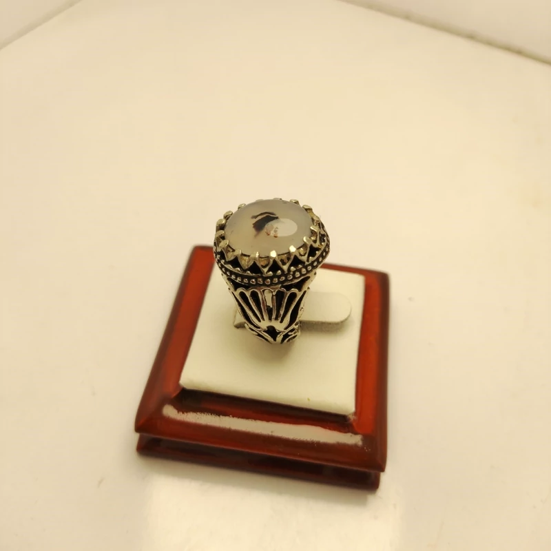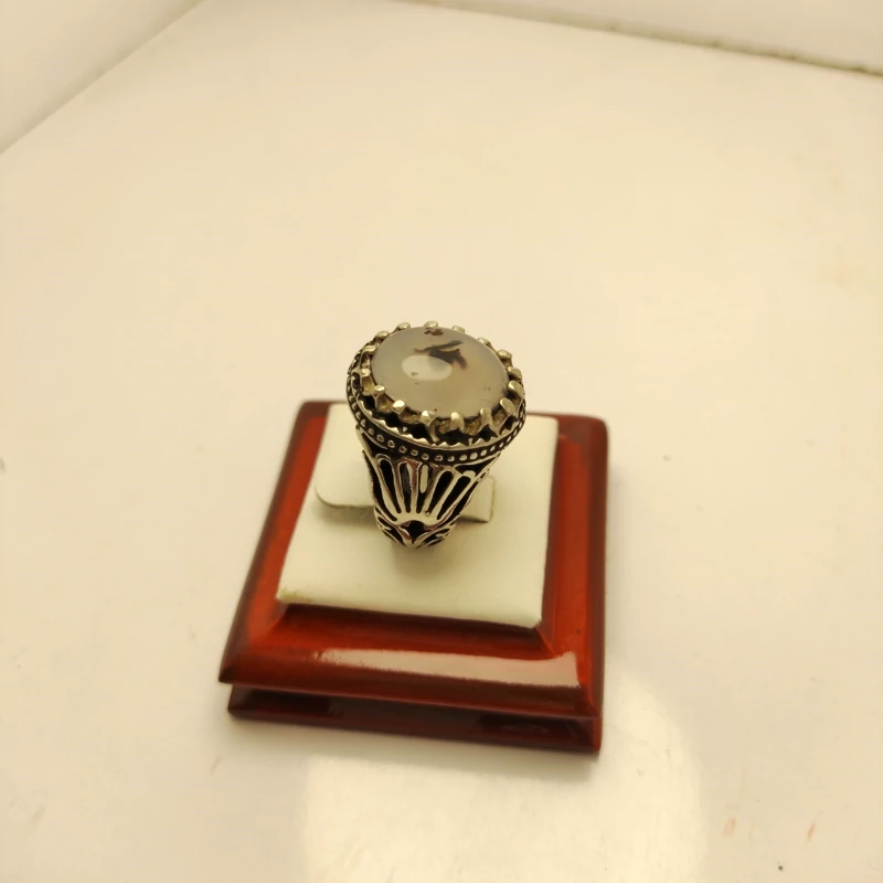 انگشتر مردانه عقیق شجر قائن نقره روس رنگ ثابت خاص و