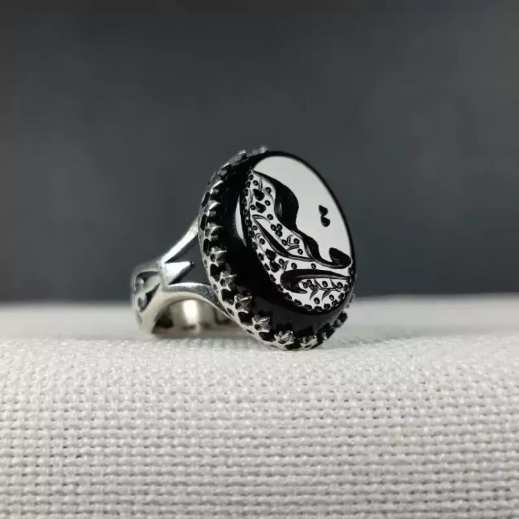 انگشتر نقره مردانه عقیق مشکی منقش به یا رقیه -.