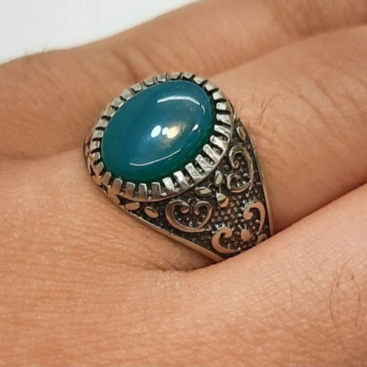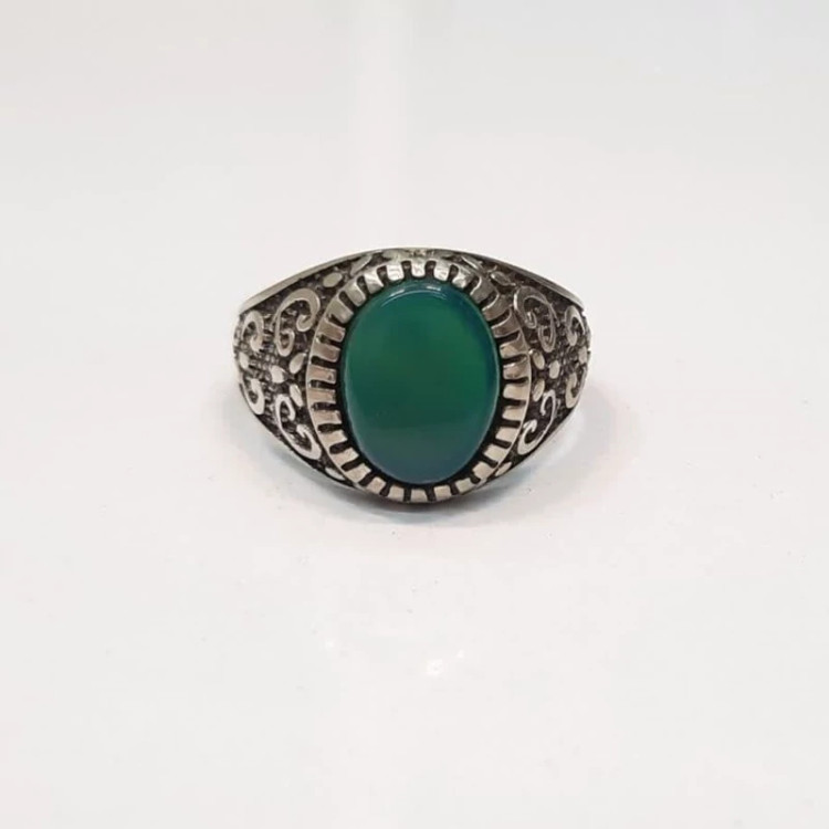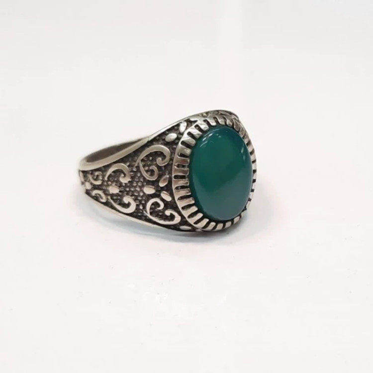 انگشتر عقیق سبز اسپرت مردانه رکاب نقره روس کد 7