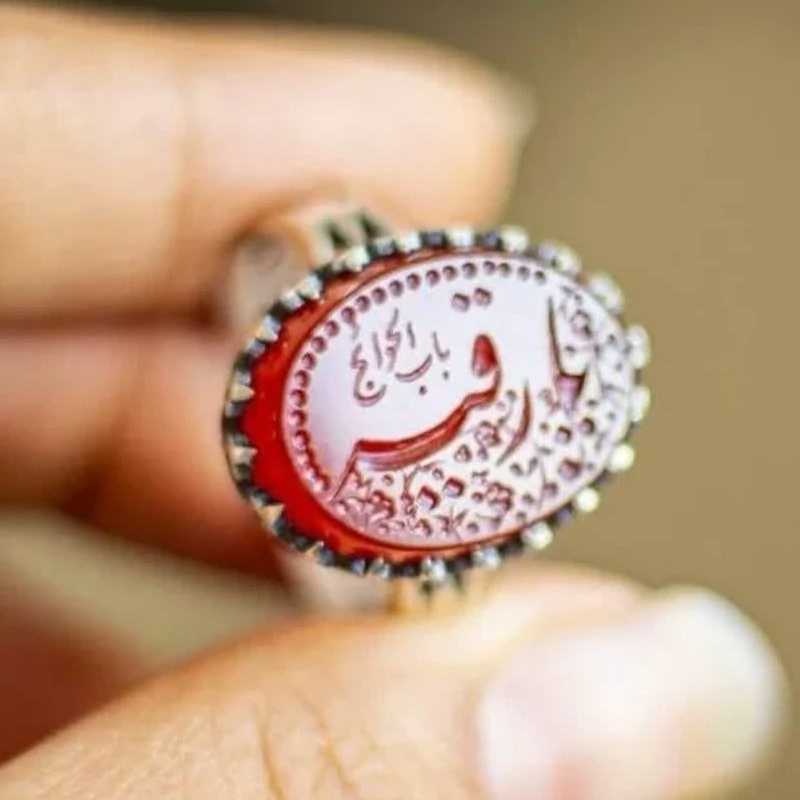 انگشتر نقره مردانه عقیق سرخ منقش به ذکر یا رقیه. --