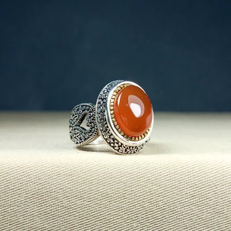 انگشتر نقره مردانه با نگین عقیق سرخ یمن -،.