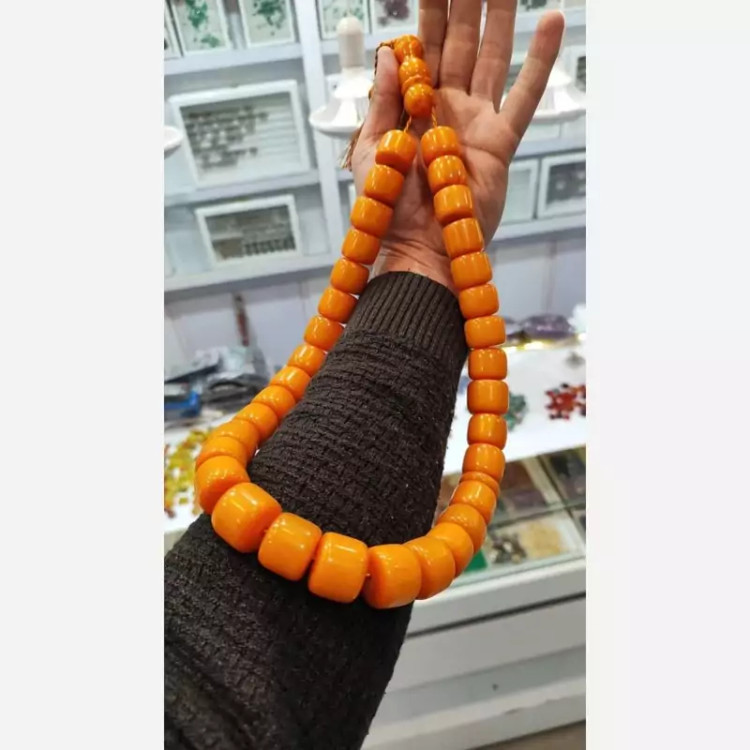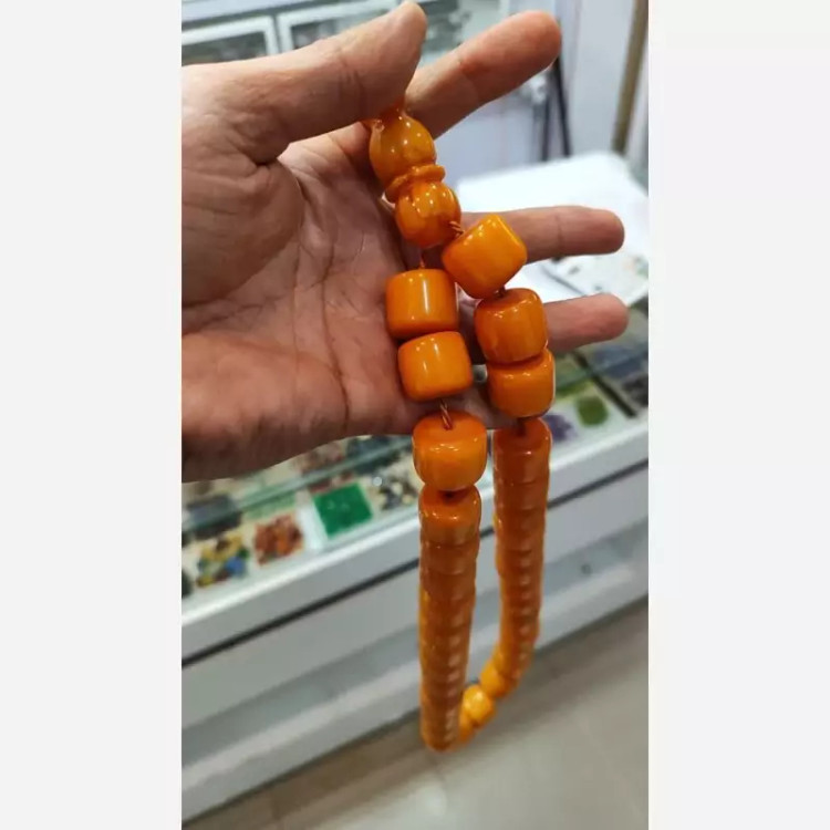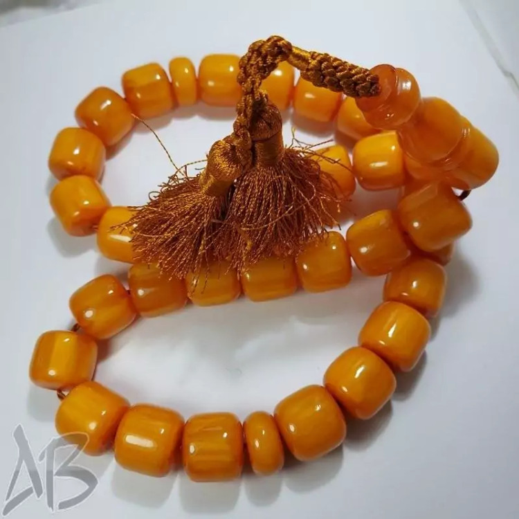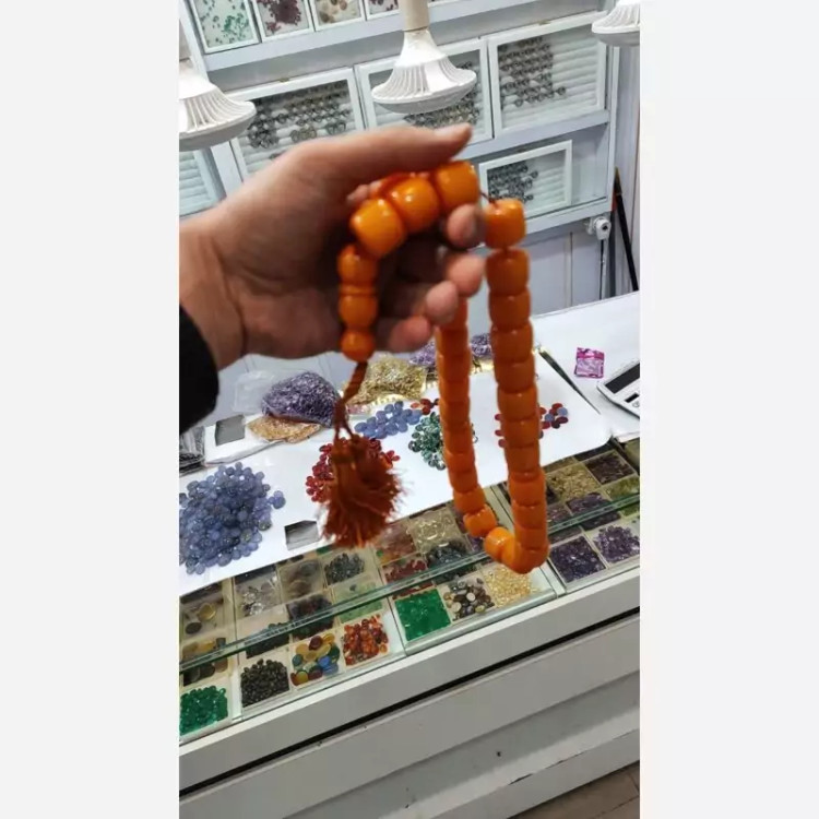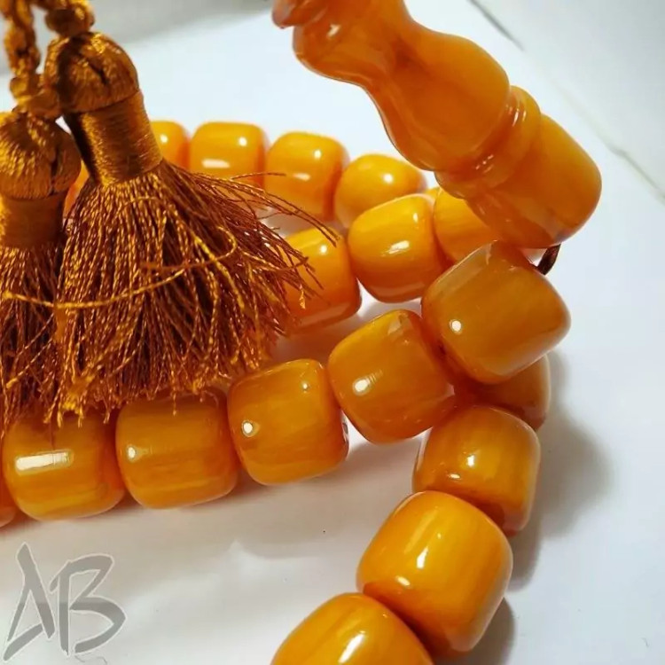 تسبیح سندلوس 33 دانه بودار استوانه ای زرد پرتقالی بسیار درشت کد 823 آقابزرگ