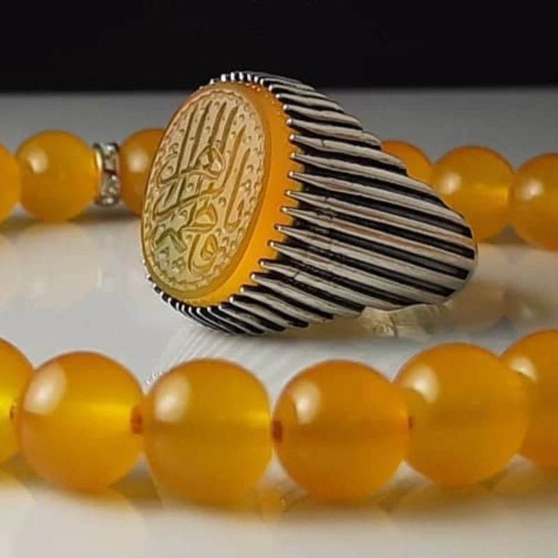 انگشتر نقره عقیق زرد با حکاکی یا فاطمه الزهرا سلام الله