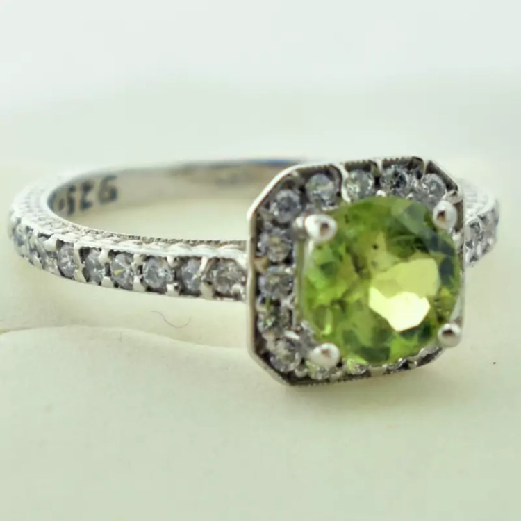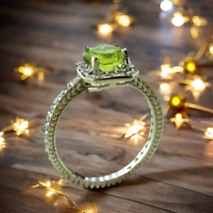 انگشتر نقره با نگین جواهری زبرجد