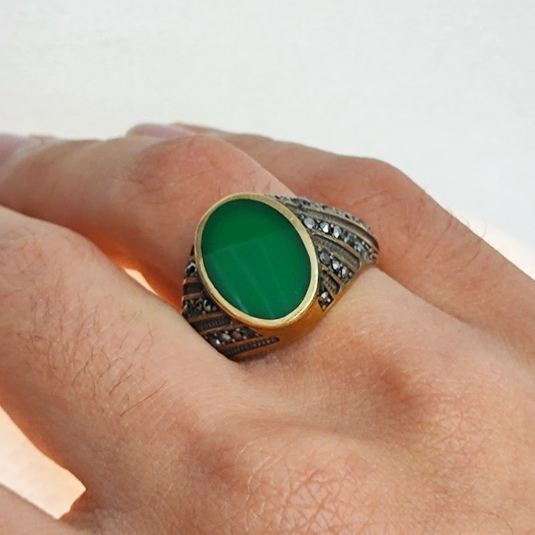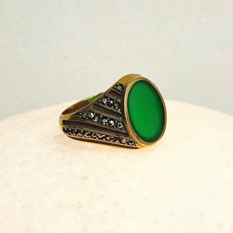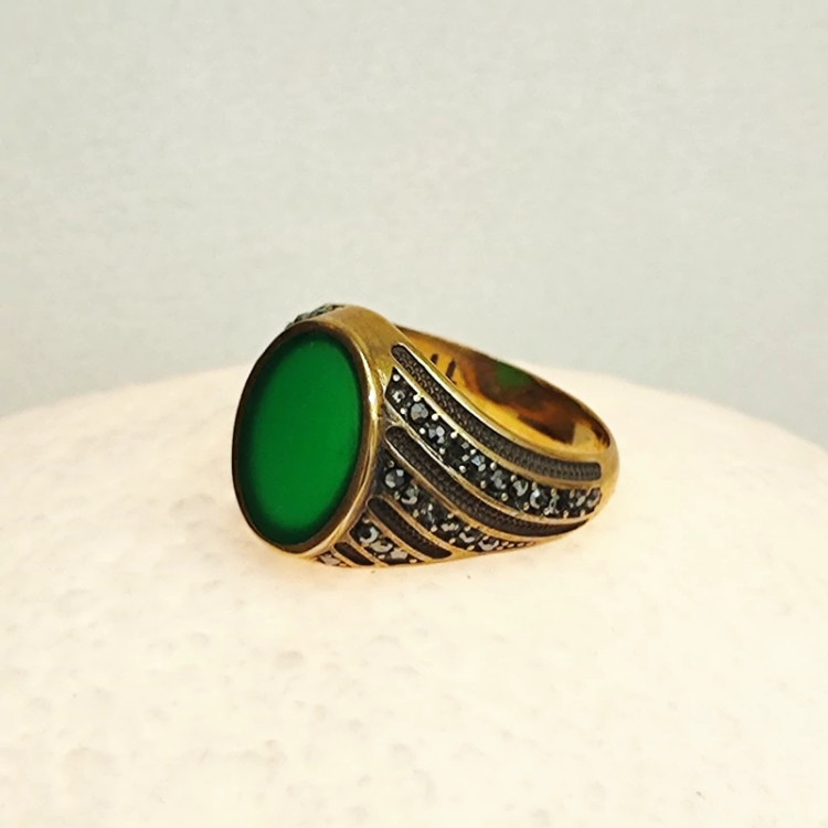 انگشتر مردانه اسپرت نگین سبز طلا روسی شیک