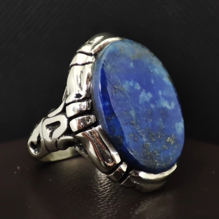 انگشتر مردانه نقره روسی با سنگ لاجورد بدخشان