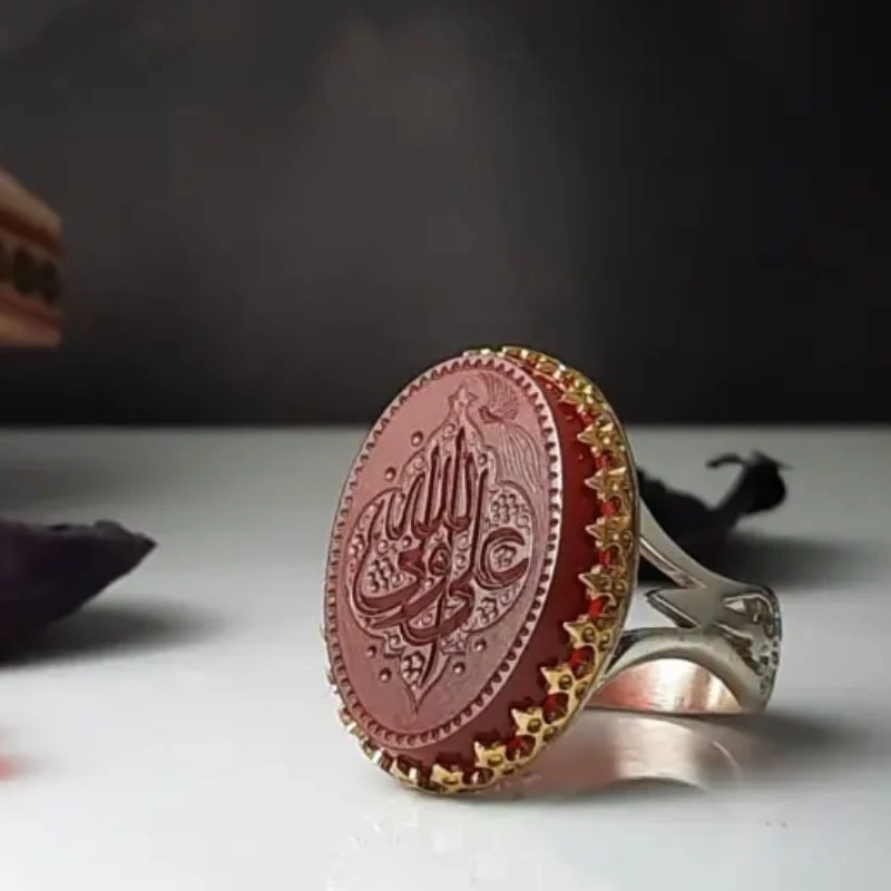 انگشتر نقره عقیق سرخ با ذکر علی ولی الله رکاب چشم نواز