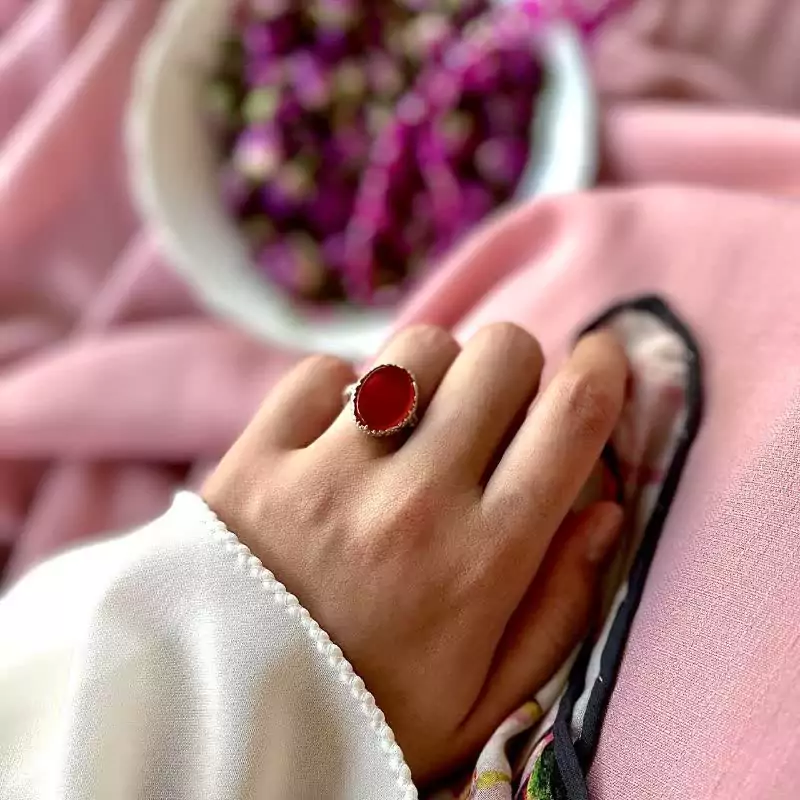 انگشتر نقره زنانه با نگین عقیق سرخ زیبا -