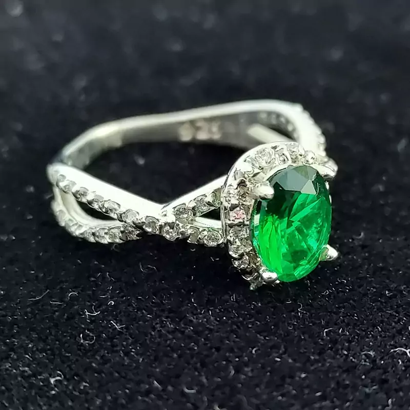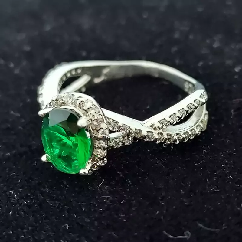 انگشتر نقره زنانه تک نگین سبز عیار 925 آقابزرگ